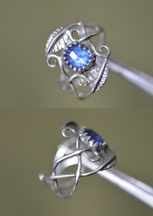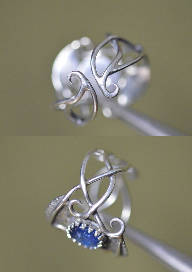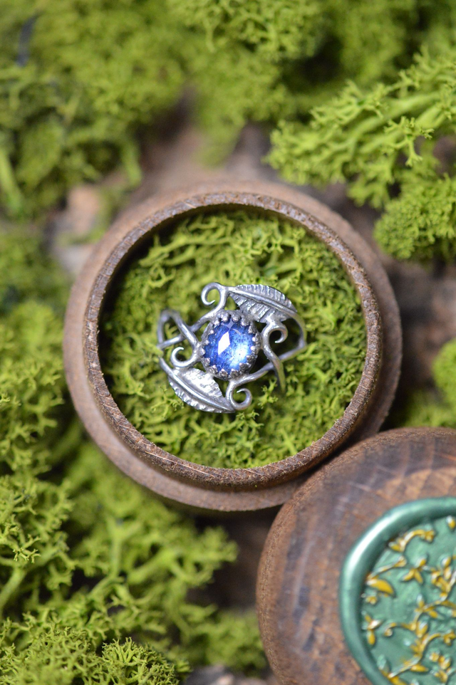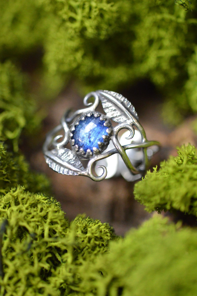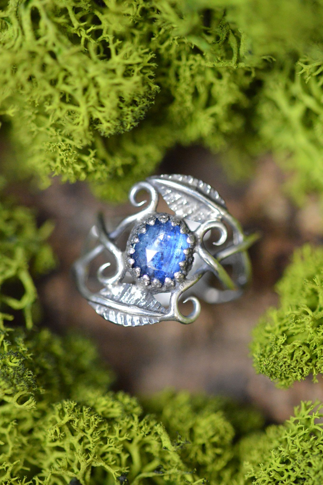 Bague Elfique - Cyanite bleue, T53 à 57, feuilles simples