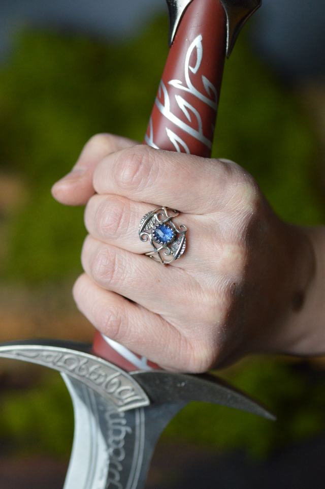 Bague aux inspirations elfiques forgée dans le feu et travaillée entièrement à la main en argent 950 .