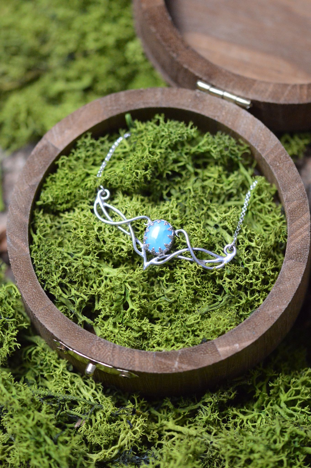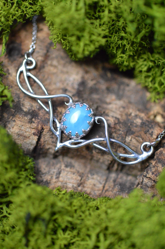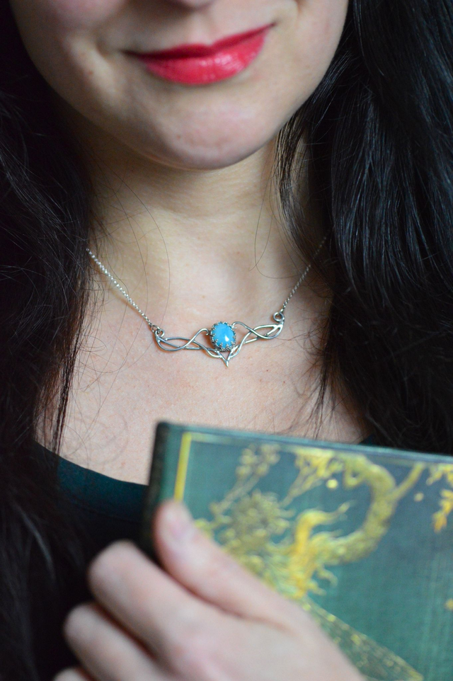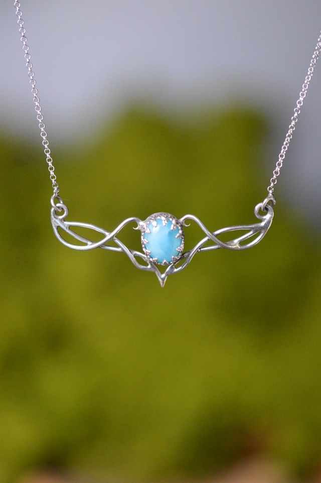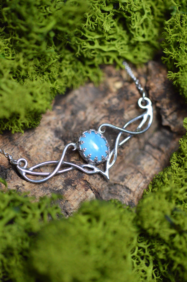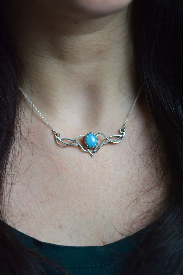 Collier aux inspirations elfiques forgé dans le feu et travaillé entièrement à la main en argent 950 .