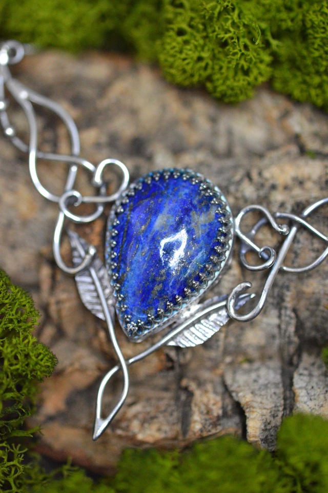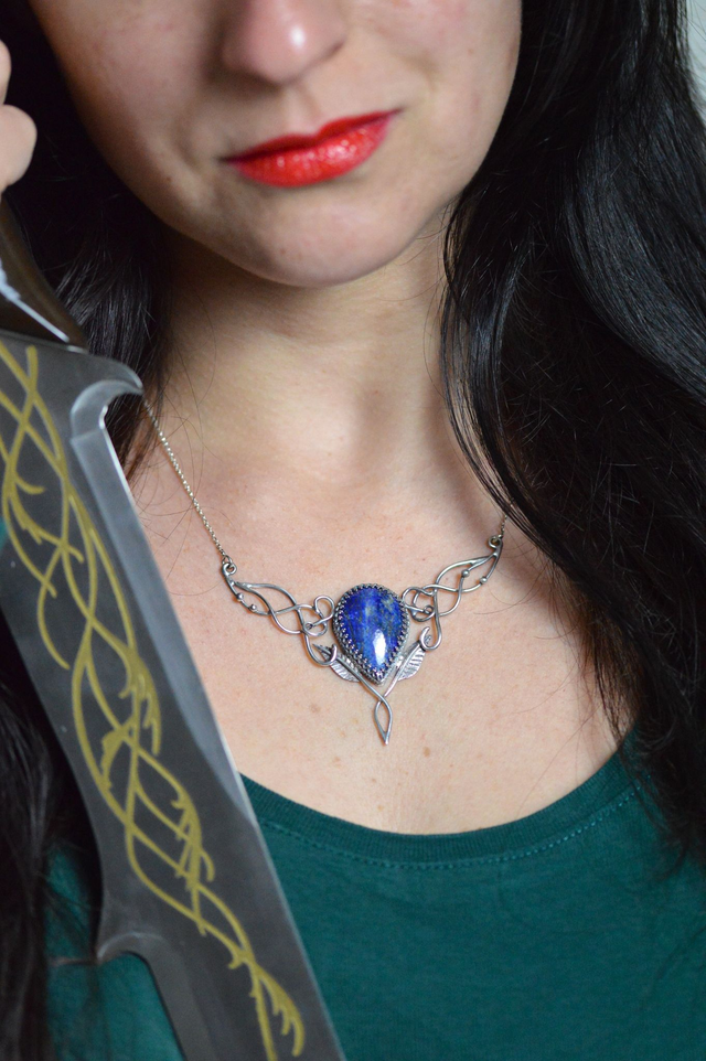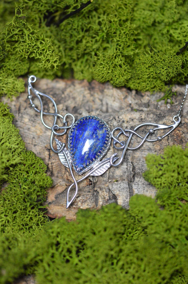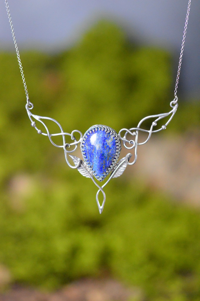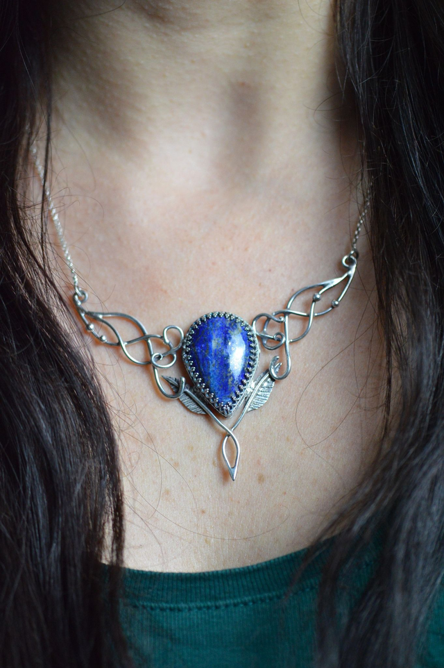 Collier aux inspirations elfiques forgé dans le feu et travaillé entièrement à la main en argent 950 .
