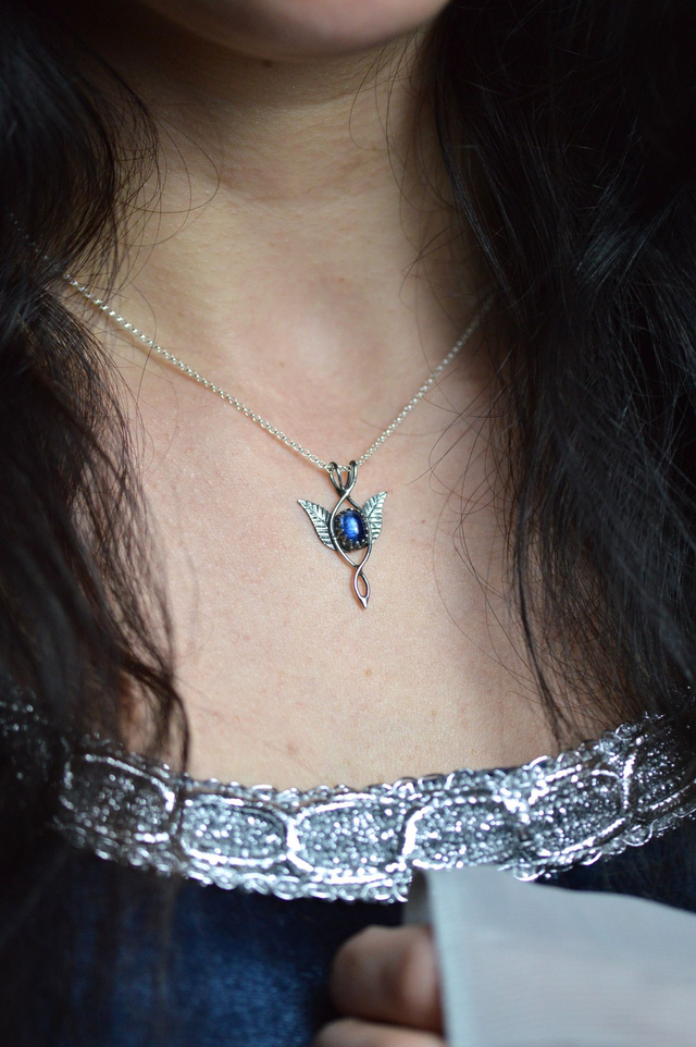 Pendentif aux inspirations elfiques forgé dans le feu et travaillé entièrement à la main en argent 950 .