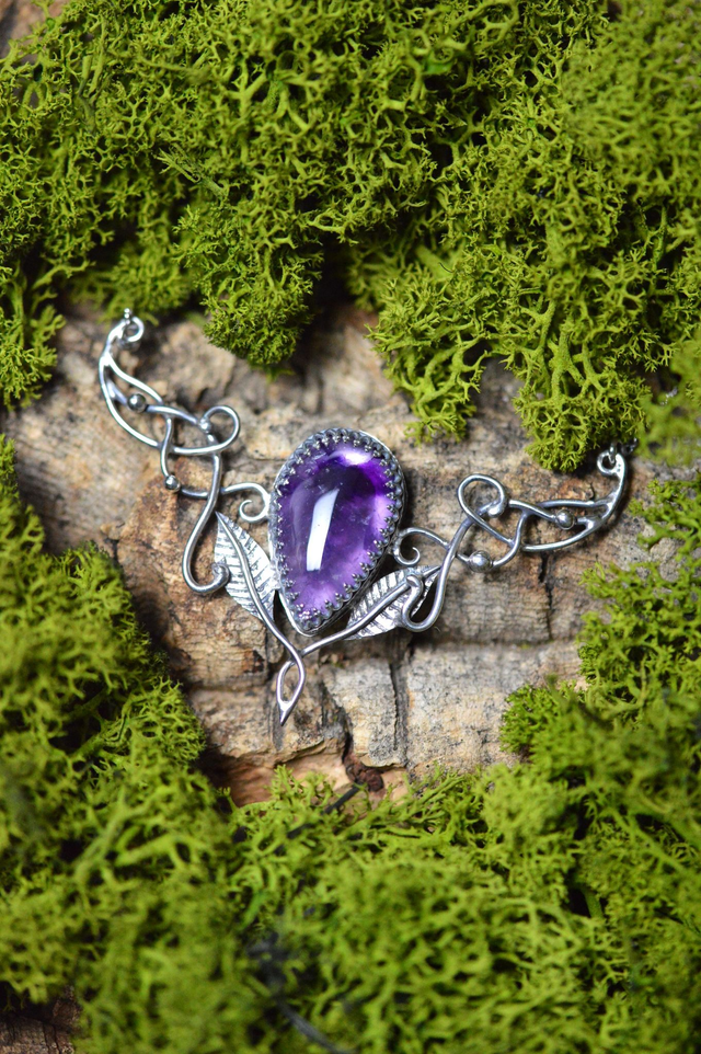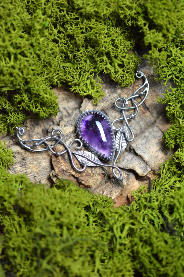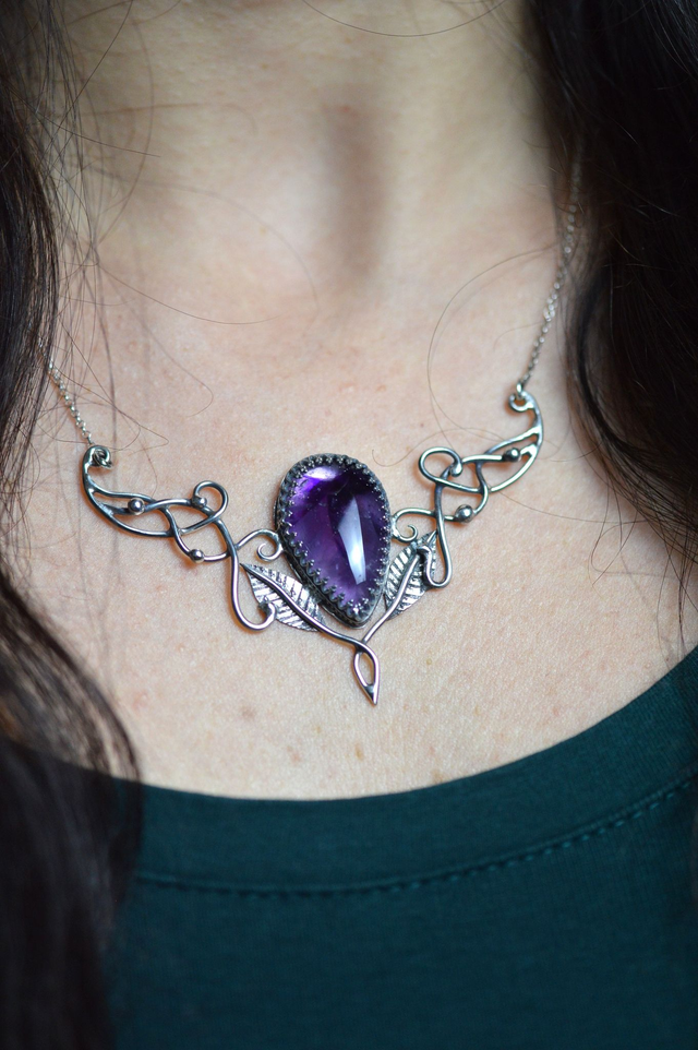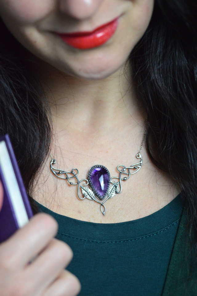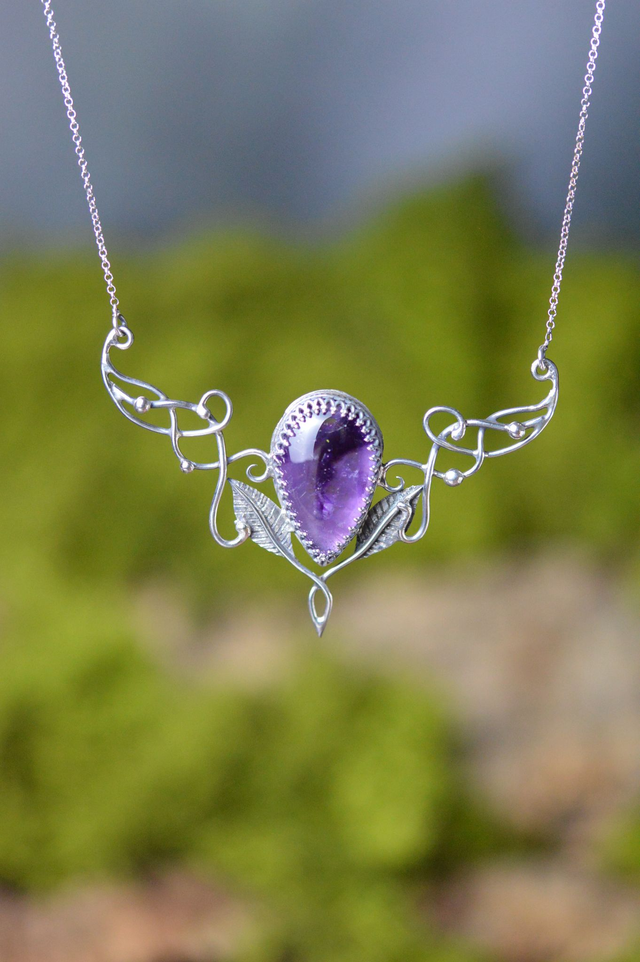 Collier aux inspirations elfiques forgé dans le feu et travaillé entièrement à la main en argent 950 .