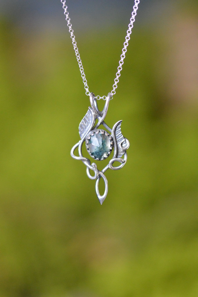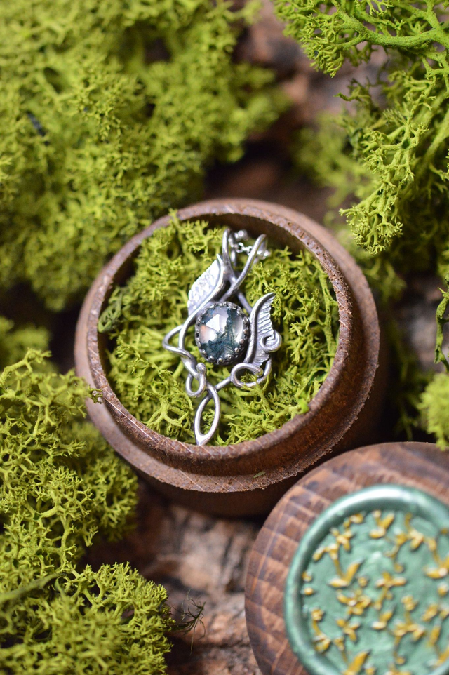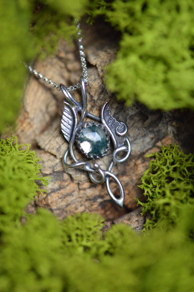 Pendentif Elfique - "L'Eclat des sous-bois", Agate mousse