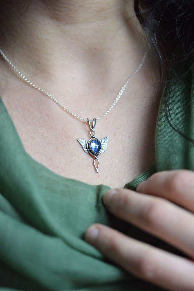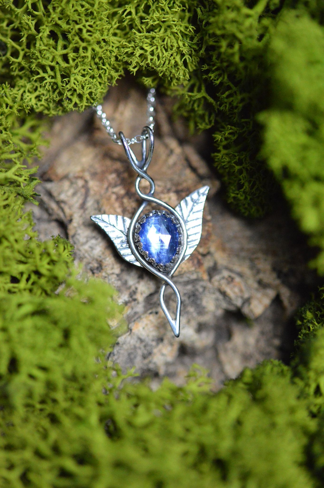 Pendentif aux inspirations elfiques forgé dans le feu et travaillé entièrement à la main en argent 950 .