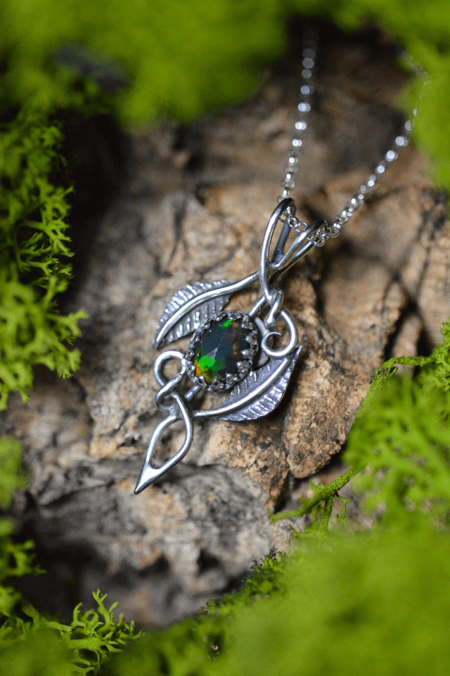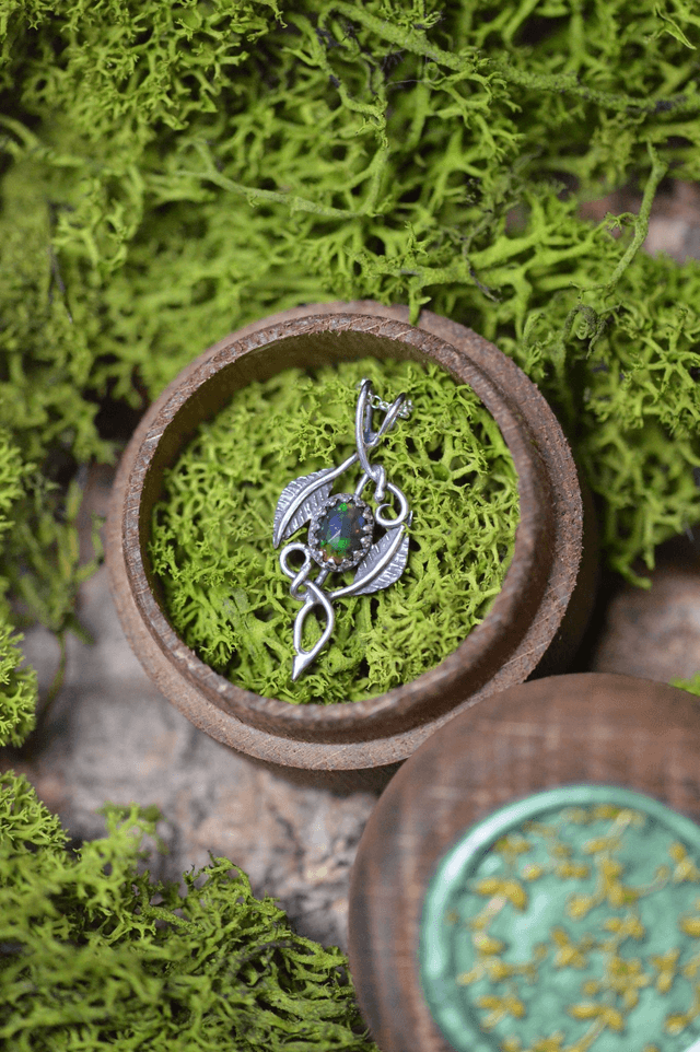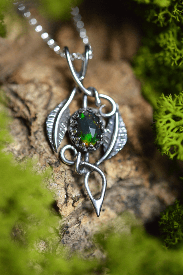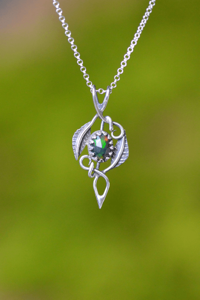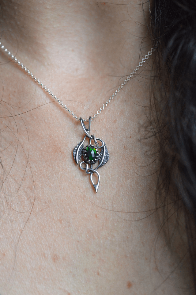 Pendentif aux inspirations elfiques forgé dans le feu et travaillé entièrement à la main en argent 950 .